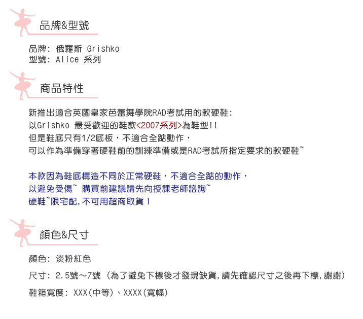 俄羅斯 Grishko 芭蕾舞硬鞋/軟硬鞋【愛麗絲 Alice 系列】英國皇家RAD考試