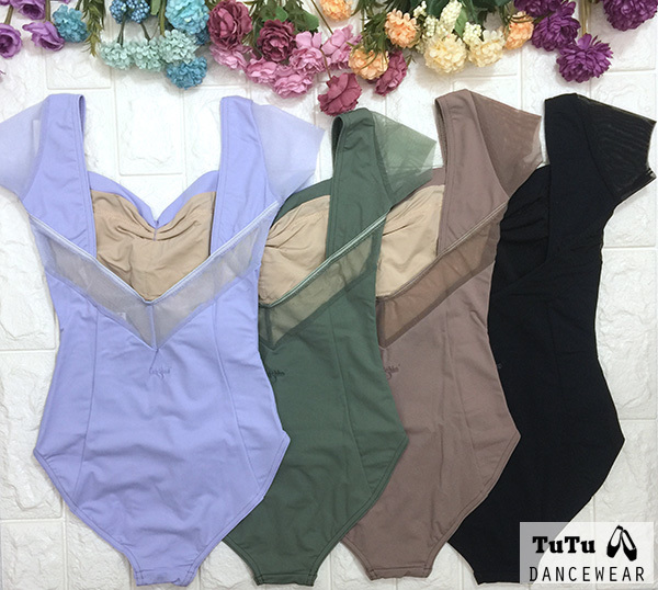 俄羅斯 Grishko【GR-DA2003 網紗拼接短袖舞衣】可放胸墊