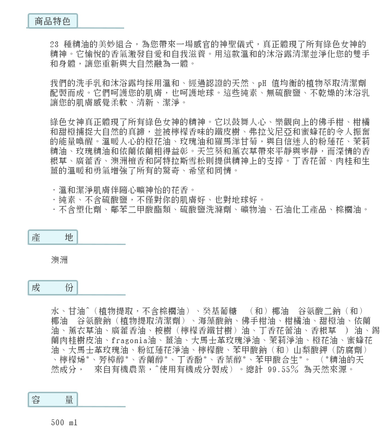 澳洲 Perfect Potion【PP-Body Wash 綠色女神系列天然精油有機香氛沐浴露&洗手露】