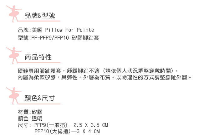 美國 Pillow For Pointe【PF-PFP9/PFP10 硬鞋專用矽膠腳趾護套】