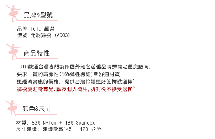 TuTu 嚴選商品【AD03 成人開洞舞襪】