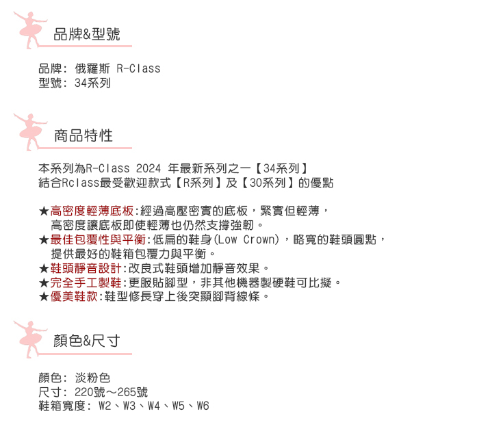 俄羅斯 R-Class 芭蕾舞硬鞋【34系列 - H底板】